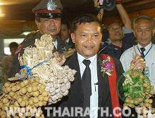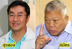 ด้านนายสมัคร สุนทรเวช หัวหน้าพรรคพลังประชาชน ให้สัมภาษณ์วิทยุรัฐสภา หลังเข้ารายงานตัว ส.ส. ว่า กว่าจะเดินมาถึงวันนี้ พรรคพลังประชาชนต้องฝ่าขวากหนามมากมาย มีคนพยายามจะสับนักการเมืองพวกนี้เป็นท่อน ๆ แต่ตนก็ไปรวบรวมผู้คนมาสู้ในนามพรรคพลังประชาชน ที่ผ่านมา มีคนสงสัยว่า ใช้เงินจากไหนมาใช้ในการหาเสียง แต่พรรคการเมืองเก่าที่ประกาศว่าไม่เคยใช้เงิน หิ้วกระเป๋าหนึ่งใบเข้ามาเล่นการเมือง แต่ไป ๆมา ๆ กลับบอกว่ามี 600 กว่าล้าน แต่เราได้ 130 ล้าน ซึ่งมาจากการบริจาค พรรคพลังประชาชน ถูกดูหมิ่นว่าไม่จงรักภักดีเจ้าฟ้าเจ้าแผ่นดิน