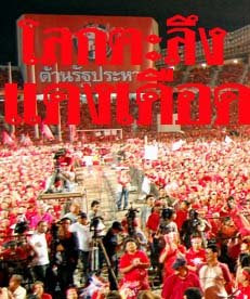 จนวันนี้ประเทศไทยกำลังถูกท้าทายว่า จะเดินหน้าเข้าไปสู่ประชาธิปไตยที่ก้าวหน้าขึ้นหรือว่าจะถูกถกถอย ถอยหลังไปอีกหลายสิบปี เพราะฉะนั้นอยู่ที่พี่น้องประชาชนที่ว่า เราจะช่วยกันต่อต้านการปฏิวัติรัฐประหาร ทำลายประชาธิปไตยทุกรูปแบบ เพื่อเราจะได้ประชาธิปไตยระบบที่ให้ความเป็นธรรมกับคน ด้วยความถ่วงดุล ไม่มีสองมาตรฐานอย่างที่เราเจออยู่ ประชาธิปไตยเป็นจิตวิญญาณของการบริหารประเทศ เศรษฐกิจจะดีได้ก็ต่อเมื่อระบบการเมืองการปกครองของประเทศเป็นธรรมและให้โอกาสคน แต่วันนี้ ระบบเศรษฐกิจของโลกกำลังเข้ามาเป็นอันตรายอย่างสูง แต่สิ่งที่เกิดขึ้นในวันนี้ เขาเรียกว่า Global Crisis Financial หรือวิกฤตการเงินโลก และเกิดกับประเทศที่เป็นเจ้าตำรับทุนนิยม คืออเมริกาและแถวยุโรป ความเสียหายนับค่าไม่ได้"