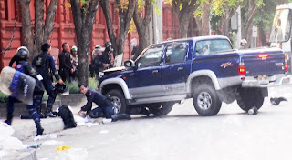 ทหารไม่ปฏิวัติ เพราะไม่มีความชอบธรรม ถ้ารัฐบาลเข้าปราบ พวกมันให้คนแต่งเป็นชุดตำรวจถ่ายให้เห็นหน้าเบลอๆ กำลังยิงปืนใส่เด็กเล็กๆ หรือ เอาภาพเด็กโดนยิงเสียชีวิต แล้วก็ให้สื่อของพวกมัน เอาภาพไปออกทุกช่องแล้วก็โทษว่า เพราะรัฐบาลปราบม็อบ..เราเสร็จมัน...ขณะนี้รัฐบาลคงรอให้ต่างประเทศช่วยสร้างความชอบธรรมให้เต็มที่..เมื่อวานสหรัฐออกมาแล้ว..เดี๋ยวมีอีกหลายประเทศ..เพราะมันกระทบไปถึงพวกเขาด้วย ที่เขียนมาอย่านึกว่าโอเวอร์ เพื่อให้ได้อำนาจ.ทำได้ทุกอย่างโดยเฉพาะอ้ายลิ้มมันเป็นหน่วยกล้าตายเสียด้วย..