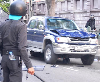 “ปรี่เข้าชนซ้ำ แล้วซ้ำอีกสองสามรอบ และชนตำรวจอีกสองสามคนที่มาช่วยเพื่อนด้วย”
