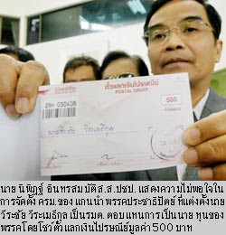 หรือแม้แต่จุดจบของนายสมัคร ก็ถูกศาลรัฐธรรมนูญวินิจฉัยกรณีรับจ้างจัดรายการทำอาหารทางโทรทัศน์ก็ตาม