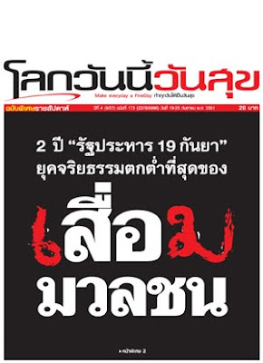 ไทยอีนิวส์ตีแผ่วงการสื่อกระแสหลัก ซึ่งกลายเป็นกระแส"หลักลอย"ไร้จรรยาบรรณ ไร้ความเป็นกลาง จากฐานันดรสี่เหลือค่าเพียงกระดาษเปื้อนหมึก ใบปลิวโฆษณาชวนเชื่อให้ทรราชชนิดทำขาวเป็นดำ(Black propaganda) คร่าทำลายประชาธิปไตย คร่าทำลายมติมหาชนคนส่วนใหญ่ของประเทศอย่างไร้ยางอาย นับจากเครือผู้จัดการกับปฏิบัติการล่าสุดพลิกขาวเป็นดำ จากทักษิณให้สัมภาษณ์TIMESONLINEจงรักภักดีสุดใจให้เป็นบทสัมภาษณ์ล้มสถาบัน ส่วนเปลวสีเงินไทยโพสต์สุดอัปยศไร้ยางอายเอาความแค้นส่วนตัวมาสั่งฆ่าแม้ว แต่ตัวเองเชลียร์รัฐมนนตรีเจ้าของอาบอบนวดแลกเงินโฆษณาอย่างไร้ศักดิ์ศรี ด่าไปทั่วแต่เวลาโดนฟ้องลูกน้องขึ้นศาลรับกรรม ล่าสุดปลด"ใบตองแห้ง"ที่ยืนข้างประชาธิปไตยโดยไม่ต้องจ่ายค่าชดเชยตามกฎหมายแรงงาน ส่วนเนชั่นสัมพันธ์ลึกแก๊งหยุ่น+เปรม+มาร์ค สุมหัวทำลายประชาธิปไตยเชิดชูอำมาตย์ สวาปามผลประโยชน์โฆษณาและประเคนทีวีให้กัน ล่าสุดนำหุ้นเน่าNBCเข้าตลาด โดนนักเล่นหุ้นเมินแก้เผ็ด