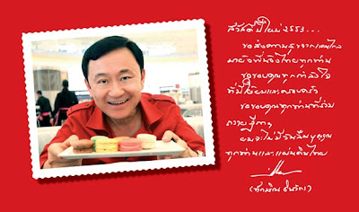 "ผมยังสบายดี ยังกินได้ ไม่ต้องเป็นห่วง ตรุษจีนนี้ขอเชียร์อยู่ข้างนอก ยังไม่ได้กลับไปตรุษจีนที่ประเทศไทย แต่กำลังคิดอยู่ว่าถ้าตรุษไทย (สงกรานต์) จะกลับไปดีหรือเปล่า"พ.ต.ท.ทักษิณกล่าวตอนหนึ่ง และได้อวยพรปีใหม่ ส.ส. ว่าขอให้ทุกคนมีความสุข และขอให้ปีใหม่ 2553 เป็นปีของพรรคเพื่อไทย เพราะจะเกิดการเปลี่ยนแปลงทางการเมืองหลายด้าน ขอให้ทุกคนทำตัวเป็นนักการเมืองที่มีคุณภาพ เพราะการเป็นนักการเมืองที่แย่ มีตัวอย่างให้ดูตลอด 2552 แล้ว เนื่องจากพรรคร่วมรัฐบาลได้ทำให้เห็นแล้ว ในอนาคตใครเข้ามาเป็นรัฐบาลไม่ว่าจะคิดแย่อย่างไรก็คงไม่แย่ได้เท่านี้อีกแล้ว