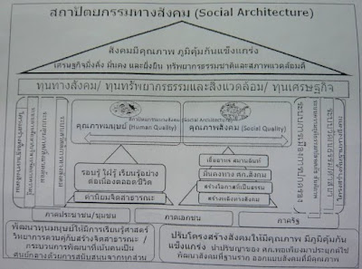 โดยในการปรับโครงสร้างสังคม เสนอให้นำหลักคิดเศรษฐกิจพอเพียงมาใช้ในทุกระดับ คำว่า เศรษฐกิจพอเพียงกลายน้ำหมักชีวภาพของป้าเช็ง เอามาทาก็ได้ หยอดตาก็ได้ กินก็ได้ รักษาได้ทุกโรค เป็น magic word ที่ใช้แก้ปัญหาทุกเรื่อง
