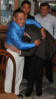 ก่อนหน้านี้ไม่นาน เนวินเพิ่งสวมบทผู้ภักดีสุดชีวิตต่อทักษิณ เป็นที่น่าสังเกตว่าเขาโผเข้าสวมกอดใครน้ำตาไหลพราก ไม่นาน"นาย"ที่โดนกอดก็เป็นอันตกต่ำลงทันตาเห็น
