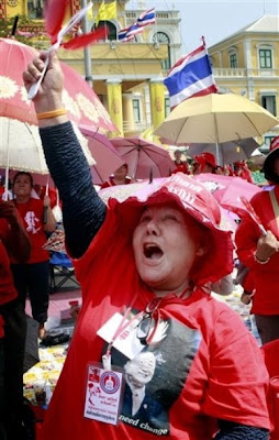 สุดท้ายคนเป็นนายกฯ ซึ่งเกลียดเสื้อแดงอย่างกับวัวกระทิง ยังต้องมานั่งใส่เสื้อแดง ทำหน้าเหมือนคนอยากจะตาย