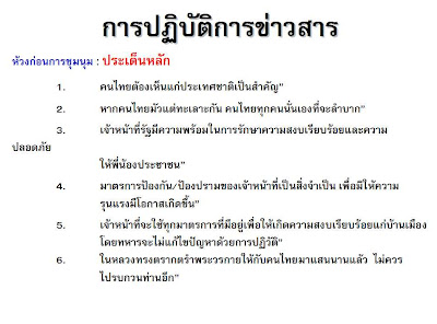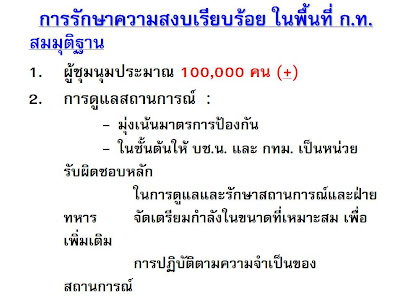 ทั้งๆที่ความไม่สงบและความไม่มั่นคงของประเทศในขณะนี้ ล้วนเกิดจากผลของการรัฐประหารในครั้งก่อน รวมถึงการที่กลุ่มอำมาตย์ ได้ขยายโครงสร้างระบอบอมาตยาธิปไตย เพื่อบีบบังคับให้ประชาชนไม่ให้สามารถใช้สิทธิเสรีภาพตามระบอบประชาธิปไตยได้ และการยังสร้างกฎเกณฑ์ให้ประชาชน ต้องตกอยู่ภายใต้โครงสร้างระบบกดขี่และควบคุมของกลุ่มอมาตย์ต่อไป