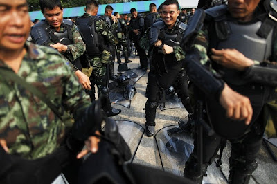 Thai security forces, army and police organized a joint exercise to prepare for possible anti-government protests in the country.