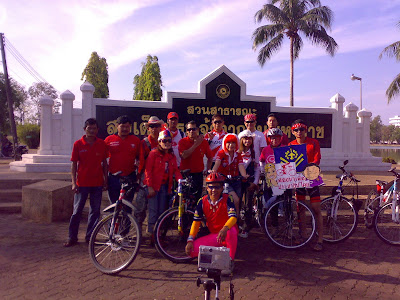 ภาพที่ ๑. เป็นบรรยากาศก่อนเริ่มปั่นในตัวเมืองจันทบุรี ซึ่งมีพี่ดารุณี กฤตบุญญาลัย, พี่พิศ, พี่สุ, พี่วินัย มาร่วมสร้างสีสันประชาธิปไตยกับทีมสองขา ฯ ขอบพระคุณมา ณ โอกาสนี้ครับ