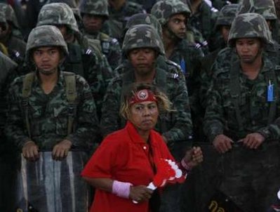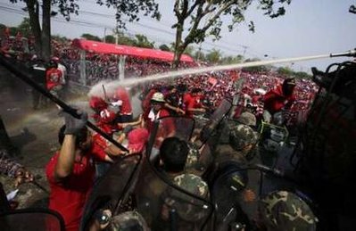 Since late March the Red Shirts have been holding peaceful and disciplined protests in Bangkok. They have not destroyed anything or held weapons of any kind. Their demands are for the dissolution of parliament and immediate fresh elections. The military-backed Government is totally opposed to elections, since the Democrat Party has never ever won a majority.