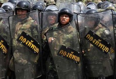 กรุงเทพฯ -- กลุ่มผู้ประท้วงต่อต้านรัฐบาลของไทยได้บุกเข้าไปยังพื้นที่ของสถานีสัญญาณดาวเทียมที่ซึ่งถูกเจ้าหน้าที่ของรัฐตัดสัญญาณทีวี ในขณะที่ทหารและตำรวจปราบจราจลได้พยายามที่จะยันทัพด้วยแก๊ซน้ำตาและปืนน้ำ