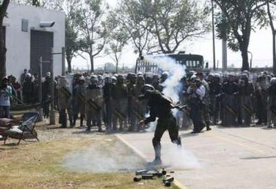 *และได้ขว้างระเบิดแก๊สน้ำตาใส่ผู้ประท้วง