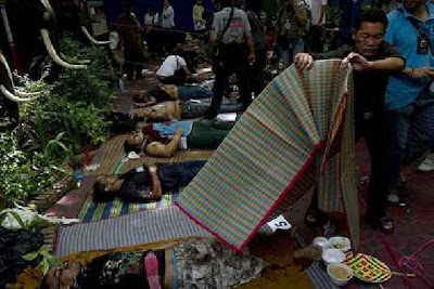 แม้มีศพมากองที่หน้าวัด 6 ศพ พี่น้อง นปช. ในวัดจำนวนมาก ยังพยายามช่วยกันปกป้องศพ กลัวว่าทหารจะเอาไปซ่อน ... โอ...พี่น้องที่อยู่ในที่ชุมนุมยามวิกฤต บางคนถึงกับขวางรถดับเพลิงที่จะเข้าไปดับไฟ แต่ทหารตำรวจ ก็ไม่ได้จัดการกับประชาชนมือเปล่าแต่อย่างใด หลักฐานของพี่น้องกว่า 3,650 คนที่ทยอยนั่งรถกลับบ้านที่รัฐบาลจัดให้ ไม่เป็นหลักฐานที่สำคัญกว่าศพนับสิบ (ที่ยังไม่รู้ว่าเป็นฝีมือใคร ใส่ร้ายหรือไม่ ลูกหลงหรือไม่) หรอกหรือ ?