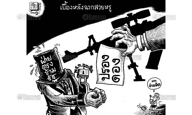 ไหนจะ "กระบองยักษ์" ในกำมือ ดาบ พ.ร.ก.ฉุกเฉินที่พร้อมฟันได้ตลอดเวลา กองทัพที่แสดงตัวเป็นพี่เลี้ยง พ่อยก แม่ยกที่อุ้มอยู่เบื้องหลัง