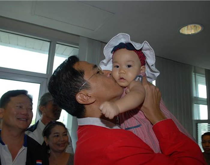 ที่มา Thai E-Newsผู้ก่อการรัก -ก่อแก้ว พิกุลทอง ผู้ต้องหาคดีก่อการร้าย และแกนนำประท้วงต่อต้านรัฐบาลจุมพิตแก้มลูกสาวตัวน้อยอย่างสุดจะชื่นใจภายหลังได้ออกจากคุกชั่วคราวเมื่อวานนี้เพื่อมาลงสมัครรับเลือกตั้งซ่อมส.ส.กรุงเทพฯเขต6 โดยได้หมายเลข4 ท่ามกลางผู้สนับสนุนอย่างเนืองแน่น การจัดเลือกตั้งในสถานการณ์ฉุกเฉินจะมีขึ้นในวันที่25ก.ค.นี้(ภาพ: AP )