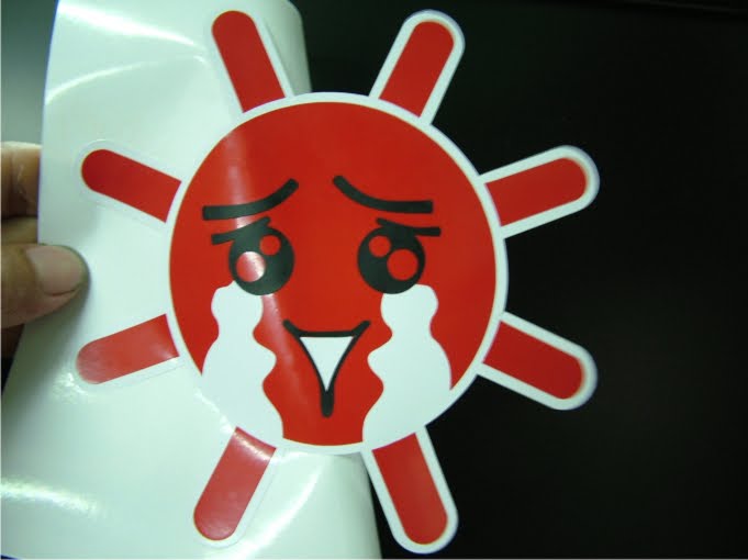 ***คุณจอน คูโบต้า แห่งบอร์ดประชาไทได้จัดทำสติ๊กเกอร์หลากหลายรูปแบบที่ตัดจากเครื่องตัดระบบคอมพิวเตอร์แล้วมานั่งสอดสีด้วยมือ ซ้อนสองชั้นพื้นล่างขอบขาวเวอร์ชั่น 1 มี 2 แบบ