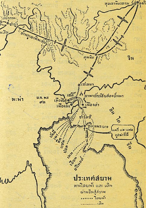 แผนที่ปฏิบัติงานของเสรีไทยสายอเมริกาเล็ดลอดเข้าไทย และบริเวณที่2วีรชนเสียสละพลีชีพ
