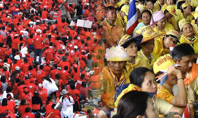ส่วนฝ่ายเสื้อแดงนั้นมาทีหลัง แต่ผู้คนสนับสนุนก็ไม่น้อยหน้า