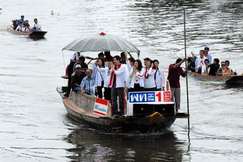 "ประชาชนต้องเลือก ถ้าบอกว่าอยากเป็นมิตรกับสมเด็จฯ ฮุนเซน แล้วยอมเสียดินแดนตามที่เขาขอมาก็สนับสนุนเพื่อไทยได้ แต่ถ้าเลือกประชาธิปัตย์ เรายืนยันปกป้องผลประ โยชน์ของเรา" หัวหน้าพรรคประชาธิปัตย์