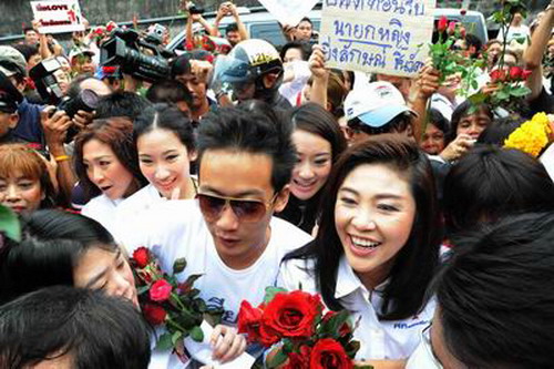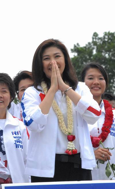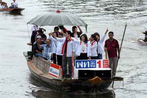 ช่วย"อาปู" - นาย พานทองแท้ น.ส. พินทองทา และน.ส.แพทองธาร ชินวัตร ลงพื้นที่ช่วยน.ส.ยิ่งลักษณ์ ชินวัตร ตระเวนพบปะประชาชนย่านมีนบุรี หาเสียงให้นายวิชาญ มีนชัยนันท์ ผู้สมัครส.ส.กทม. เมื่อวันที่ 30 มิ.ย