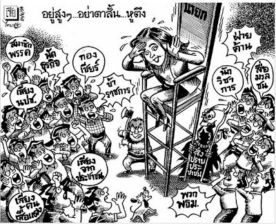 “แต่พอจะหาเรื่องกัน ก็บอก นี่พวกทักษิณนี่ บริษัททักษิณ พรรคทักษิณมาซื้อพื้นที่สื่อนี้เยอะ มันต้องเข้าข้างทักษิณแน่เลย...อ้าว แล้วพวกที่ได้จากอีกฝ่ายละคะ พวกทีร่วมประชุมวางแผนล้มรัฐบาลทักษิณละ ???