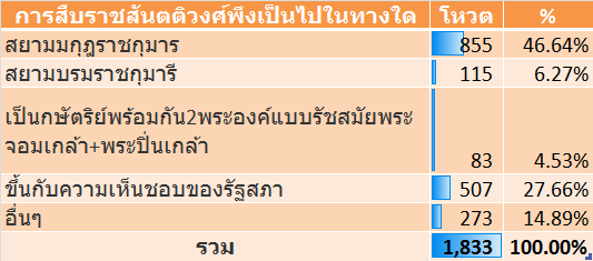 สำรวจความคิดเห็นจากท่านผู้อ่านไทยอีนิวส์ระหว่างวันที่ 3-9 สิงหาคม 2555 โดยมีผู้อ่านโหวตจำนวนทั้งสิ้น 1,833 ครั้ง (ที่มา:โพลล์ไทยอีนิวส์)